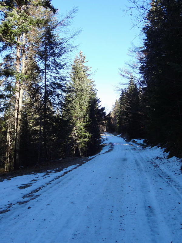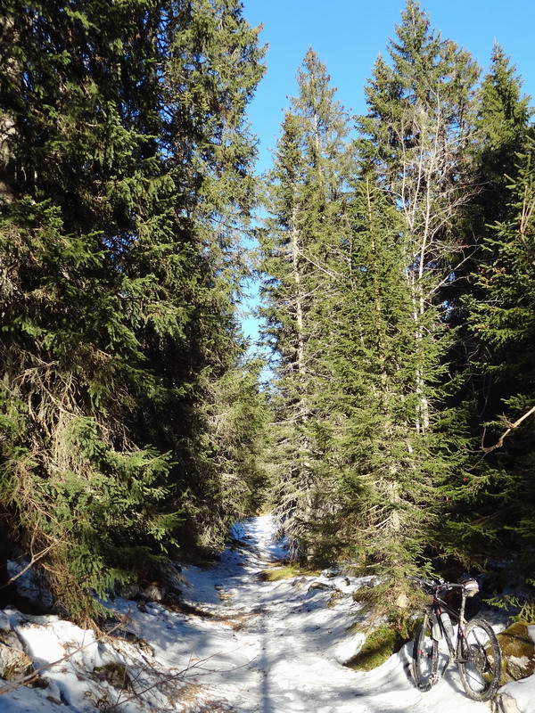 La première fois, c’était sur la route forestière du col de Crozet, où après avoir poussé un moment dans une épaisse couche de neige fondante, j’ai fait demi-tour aux environs de 1000 mètres d’altitude et me suis résigné à continuer vers le Tiocan (voir cet itinéraire).