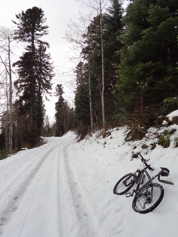 Dès le 30 novembre en tout cas, il était possible de franchir sans difficulté le col de Crozet (1485 m) : la neige avait partout fondu, à l’exception de quelques névés persistants ici et là, suffisamment durs pour être passés sur le vélo.