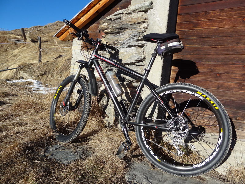 Ce n’est qu’une fois arrivé en altitude que j’ai monté mes nouveaux pneus et me suis dépêché de filer dès le lendemain matin les tester sur mes itinéraires préférés : Tsalet d’Eison (deux fois), Arbey-Arolla, Les Prixes-Ossona, alpage de Cotter (deux fois). Quelle magie de rouler sur les aiguilles de mélèze sans faire aucun bruit !