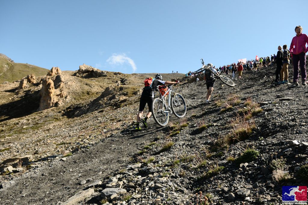 Ce point particulier constituait d’ailleurs ma principale réticence à m’inscrire au Grand Raid. N’étant ni très compétiteur, ni rapide, je redoutais de voir débouler des mecs hurlant derrière moi, particulièrement dans les descentes ou sur les passages en single au bord du précipice (Volovron-Eison). Expérience faite, je dois dire que je n’ai pas rencontré de comportement anti-sportif ou dangereux. Par contre, j’ai perdu pas mal de temps dans les descentes (où je suis lent) à me cantonner presque systématiquement à droite pour laisser passer les autres, même quand cela voulait dire rouler dans la caillasse et les trous alors qu’à gauche ça aurait été nickel.