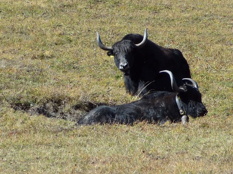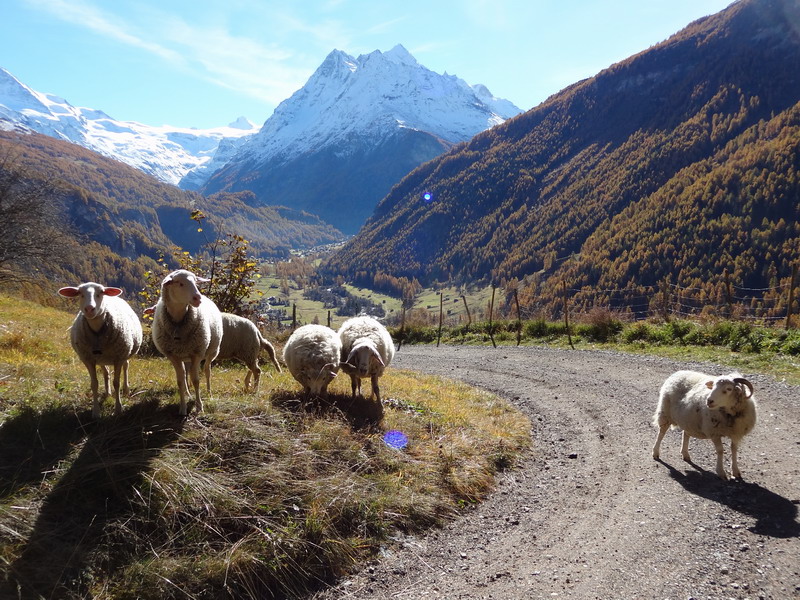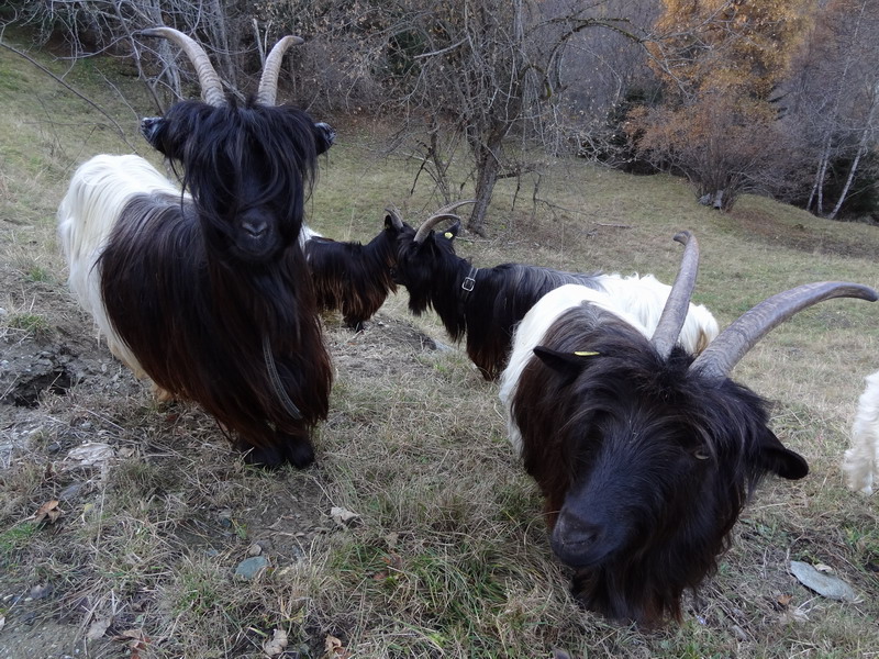 Dans l’attente, je me réjouis avec tout ce qui vit de la persistance de cet été indien exceptionnel – nous sommes maintenant le 6 novembre et les prévisions de MétéoSuisse n’annoncent pour l’heure aucun changement jusqu’au 19 novembre !!! La montagne est désertée par les touristes et j’en profite pour converser (dans leur langue) avec mes potes à poils et à plumes : outre les cerfs et les chocards évoqués plus haut, il y a les chamois et les chevreuils (faut parler vite), moutons et brebis, chèvres, vaches noires d’Hérens (entre deux combats), vaches… « normales », ânes, chevaux, yacks (oui, à la Giette !), corbeaux, pies, geais et autres mésanges agitées.