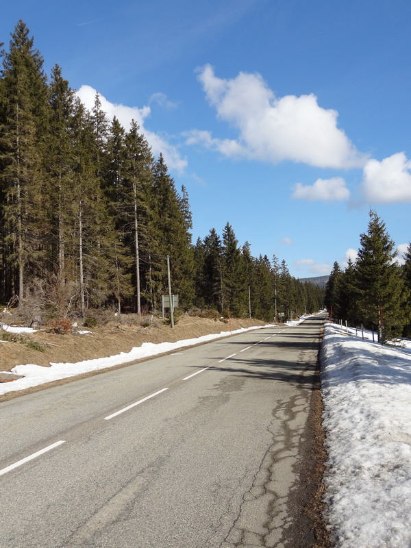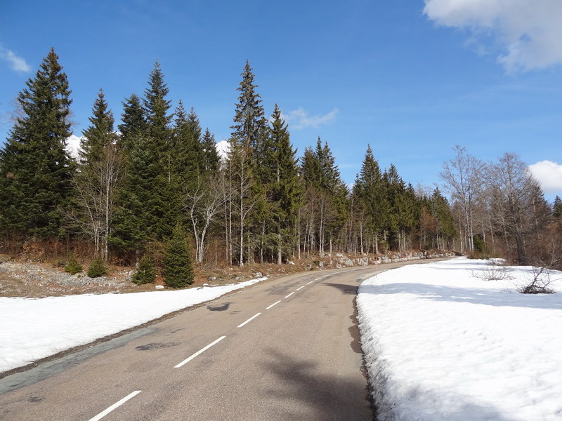 La deuxième ascension de la journée nous attend entre Mouthe et le col de Landoz-Neuve : il faut franchir le Mont Risoux pour passer dans la vallée de Joux. La route dans la forêt est très agréable et il n’y a pratiquement pas de trafic. Avec ses 1260 mètres, le col de Landoz-Neuve représente le point culminant de ce tour jurassien.