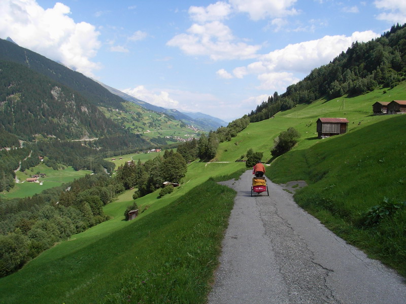 De Disentis / Mustér (GR) à Buchs (SG) par la route cycliste du Rhin (août 2007).